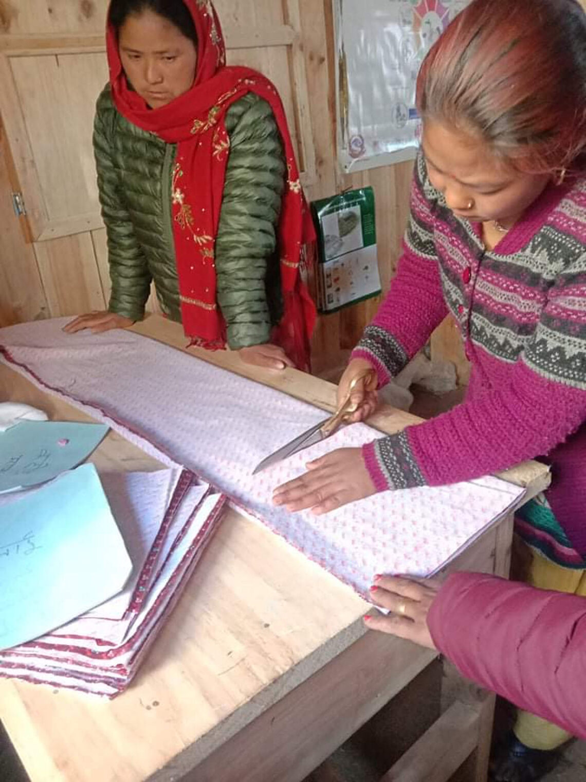 So haben unsere Expertinnen aus Chyangsar jetzt auch die Frauen in Ghunsa und Meranding trainiert. In den Nähwerkstätten werden dort jetzt überall waschbare Binden genäht, die über die Kooperative verkauft werden können.
