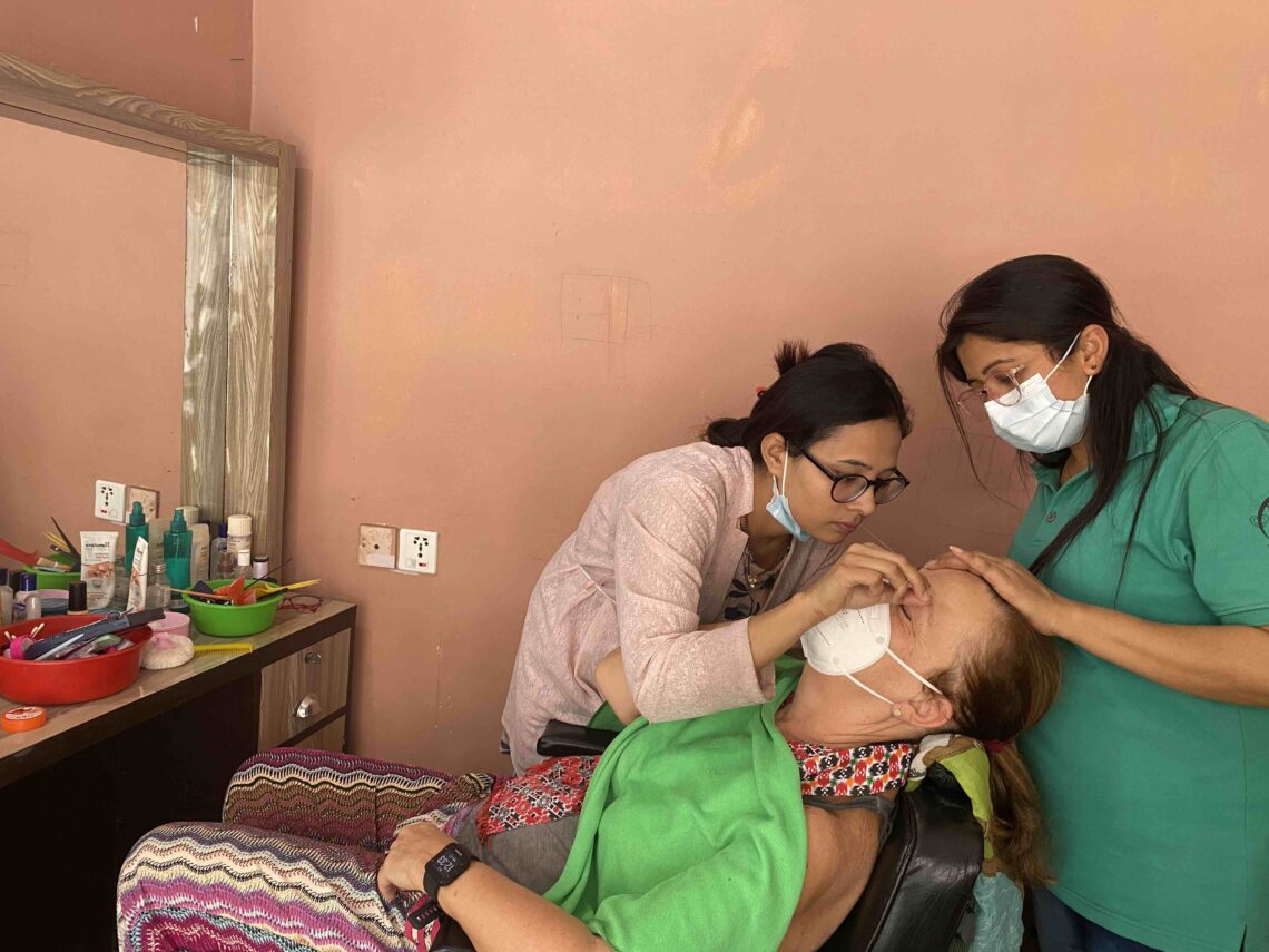 .. läßt sich nicht nur nähen, sondern auch Augenbrauen (nicht ganz schmerzfrei) entfernen. In unserem Mentoringprogramm in Pokhara werden einige Mädchen als Kosmetikerinnen ausgebildet. Sie können dann ihr eigenes kleines Geschäft aufmachen