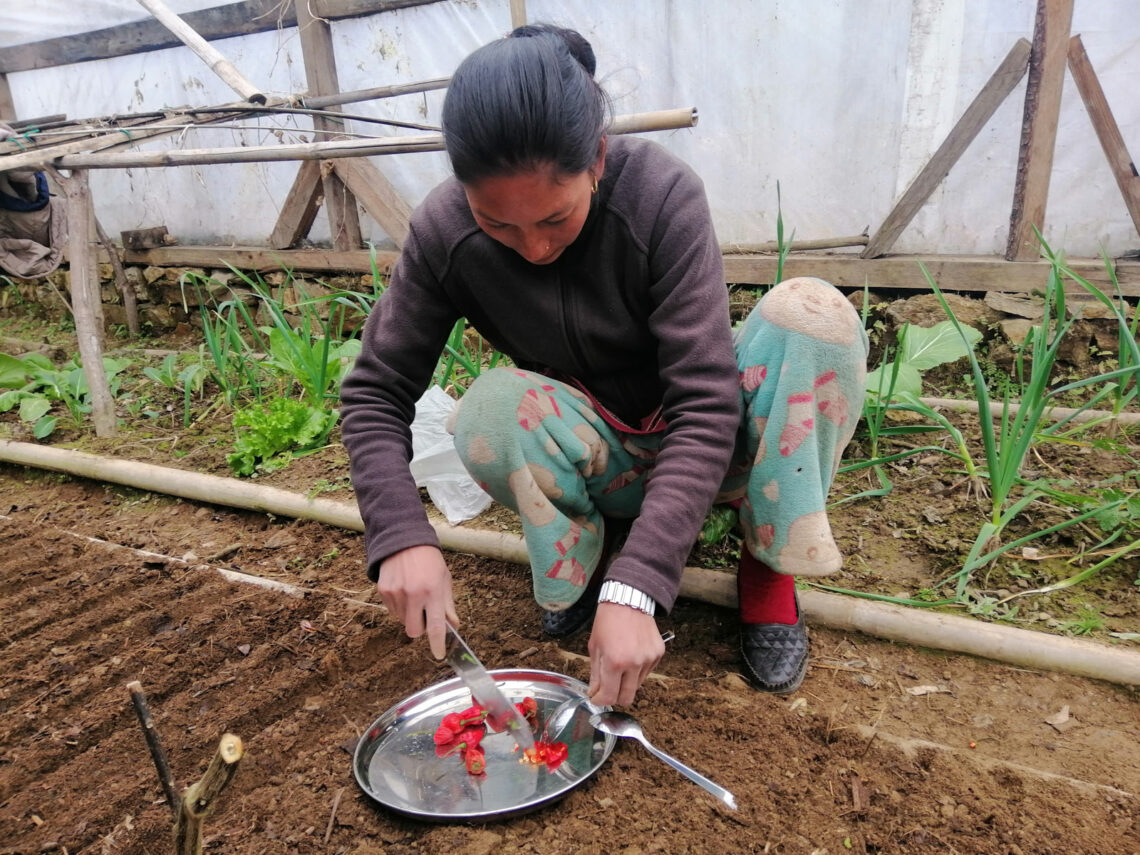 .. werden die Arbeiten auf der Modellfarm in Chyangsar. Genaue Buchführung über unterschiedliche Sorten sowie deren Erträge, eigene Samen und Beschriftung durchgehend bis zur Ernte, bringen Freude in das Lernen. So werden lokale Chili mit den von Carola Gosch mitgebrachten verglichen – wir sind neugierig, wer das Rennen macht. Hier muss man wissen, dass Chili in Nepal zu den Grundnahrungsmitteln gehört und fast für jeder Speise verwendet wird. Vielen Dank an Fair Styria für die tolle Unterstützung, die maßgeblich für den Betrieb der Farm ist.