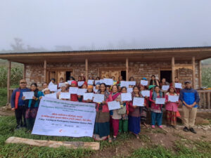 .. des PGS Trainings für biologischen Gemüseanbau in Kunikhop wurde erfolgreich von allen Frauen besucht. Die Modellfarm wurde sehr schnell aktiviert und so war es möglich, den Frauen auch schon viel praktisch zu zeigen. Toll, dass dieses Training schon in der neuen Trainingshalle stattfinden konnte, da aufgrund von schlechten Wetter es im Freien nicht möglich gewesen wäre. Möbel gibt es leider noch keine, aber die Frauen haben es sich am Boden gemütlich gemacht. Das Team von Social Work Institute Nepal und HASERA hat hier tolle Arbeit geleistet. Die Frauen gehen hoch motiviert mit Zertifikat und Pflanzen nach Hause.