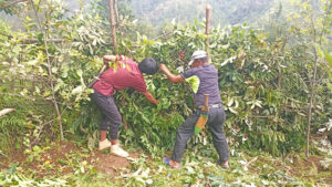 .. sind die Apfelbäume in Chyangsar jetzt durch eine massive Totholzhecke. Gemeinsam mit Bibek Dhital von HASERA konnten wir die lokale Behörde davon überzeugen, diese Art von Zaun zusätzlich zu Maschendrahtzäunen in ihr Unterstützungsprogramm aufzunehmen. Vielen Dank auch an Kusang Tamang für die tatkräftige Umsetzung. Einmal mehr konnte ein Element nach permakulturellen Prinzipien umgesetzt werden. Wir hoffen auch weitere Zäune wie diesem in der Region.