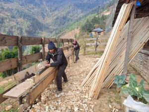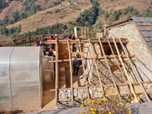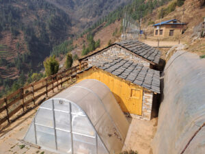 .. genutzt wird jede Fläche auf der Modellfarm in Ghunsa. In dem neuen kleinen Zubau kann in Zukunft Getreide und getrocknetes Gemüse gemahlen und verpackt werden. Damit ist wieder ein kleine Schritt in Richtung Vermarktung geglückt.