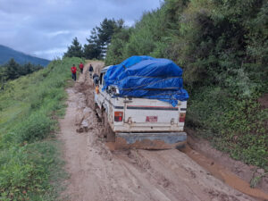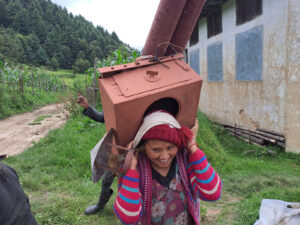 .. mußte sich der Transporter mit den Öfen kämpfen um nach Kunikhop zu kommen. Es ist immer noch Regenzeit, damit die Strassen teilweise kaum befahrbar. Umso glücklicher waren die Frauen, die Öfen dann sicher zu Fuß nach Hause tragen zu können.