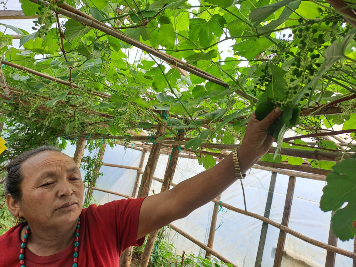 .. haben diese beiden Frauen in Ghunsa erzielt. Einmal wurden Weintrauben im Gewächshaus gezogen und über 40 kg geerntet. Eine tolle Ergänzung des Speiseplans. Mittlerweile werden die Ableger auch schon verkauft. Tolle Ergebnisse mit dem Kompost aus der Komposttoilette konnten auch schon erzielt werden. Teilweise sind hier die Frauen noch “zurückhaltend” aber die tolle Ernte wird sie überzeugen 🙂 Vielen Dank an Fair Styria für die Komposttoiletten und an die Schöck Familienstiftung für die Unterstützung der Bäuerinnen.