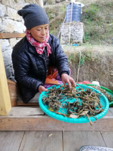 .. wird in Chyangsar und Ghunsa für die Vermarktung vorbereitet. Ob traditionell oder im Solar Dryer, getrocknete Ware lässt sich leichter und ohne Zeitdruck transportieren.