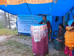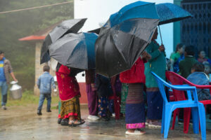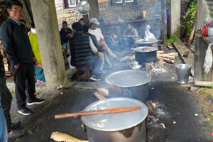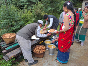 .. in Nepal zeigen sich unter anderem durch starke Regenfälle in Zeiten, wo es eigentlich schon lange trocken sein sollte. Das erschwert nicht nur die Ernte massiv, auch unser Food Festival war deutlich beeinträchtigt. Dennoch hat es stattgefunden und in Kunikhop konnten weitere 60 Frauen als Biofarmerinnen zertifiziert werden. Während der Zeremonie haben die Männer für alle gekocht und der Regen hat pünktlich zur Essensverteilung aufgehört.