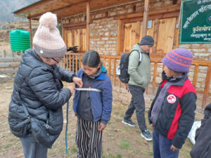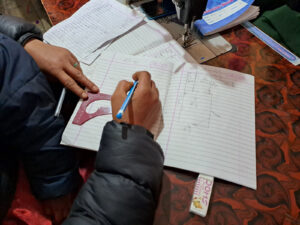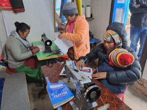 .. werden die Schuldressen für alle Dörfer von den Frauen selbst genäht. In 2 Werkstätten (Merangding und Kunikhop) werden je einige Frauen in einem Training geschult wie vermessen, zugeschnitten und genäht wird. Im Rahmen des Trainings entstehen dann die Schuldressen.