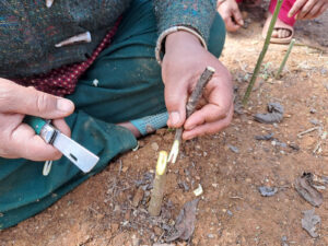 .. werden jetzt auch Obstbäume in der Baumschule von Ghunsa. Auf heimische Unterlagen werden Mandeln, Äpfel und Nußbäume veredelt. Das ist ganz neu für die Frauen, es funktioniert auch nicht immer aber die ersten Erfolge können gefeiert werden.