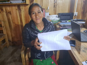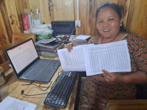 .. können die Führungskräfte der Kooperative jetzt auf ihren Computern wichtige Listen und Dokumente generieren und ausdrucken. Dafür bekam jede Modellfarm einen Computer und einen Drucker. Regelmäßig treffen sich die Leiterinnen und arbeiten sich gemeinsam ein. Da macht auch mehr Spass 🙂