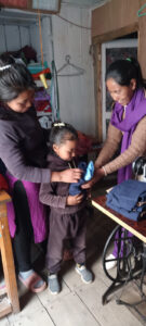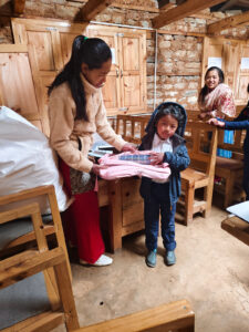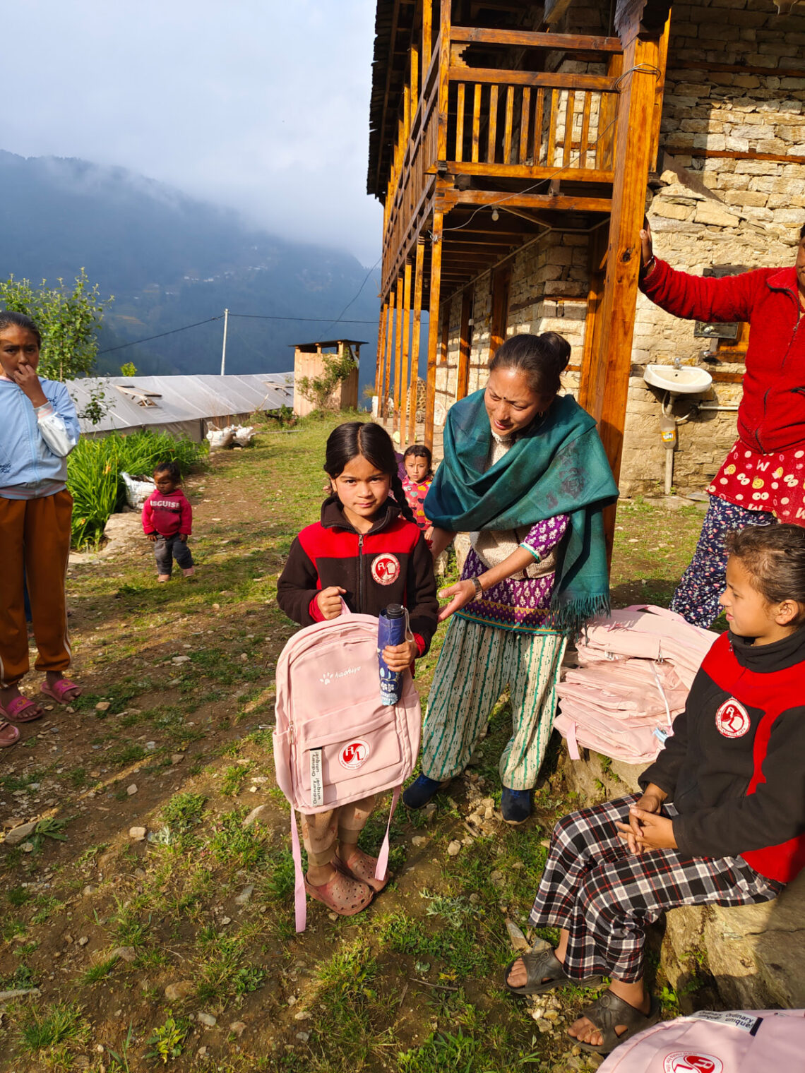 .. bekamen die Mädchen nicht nur die selbst genähten Schuldressen sondern auch Rucksäcke und Schirme. Besonders die Schirme erfreuen sich besonderer Beliebtheit. Nicht nur gegen den Regen, fallweise gegen die Sonne sondern vor allem auch als „Abwehr“ von Blutegeln, die sich in der Regenzeit von den Bäumen fallen lassen, sind sie wertvoll.