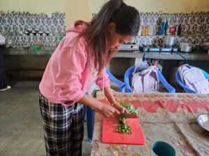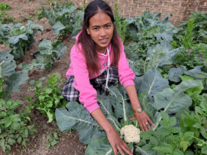 .. sind die Mädchen im Hostel auf ihr eigenes Gemüse. Die selbst angelegten Beete wurden liebevoll gepflegt sowie selbst Kompost und Düngemittel biologisch hergestellt.