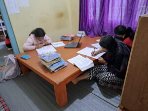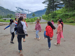 In den Pausen werden körperliche Übungen gemacht und kleine Ausflüge. Es ist wichtig, dass die Mädchen in jeder Hinsicht gesund sind.