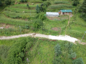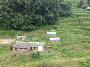 .. bekommt man auch ein wenig ein Gefühl für die Lage der Modellfarmen. Neu ist die mit Steinen gepflasterte Straße im Merangding. Das ist für das Dorf ein großer Fortschritt, so ist die Erreichbarkeit während des Monsuns auch wesentlich verbessert.