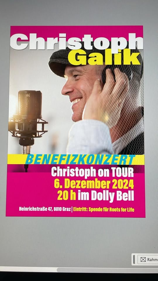 Christoph Galik am 6. Dezember 2024 im Dolly Bell in der Heinrichstraße willkommen zu heißen! Für „Roots for Life“ gibt er ein besonderes Benefizkonzert. Lasst uns gemeinsam wieder einen unvergesslichen Abend voller wunderbarer Musik erleben und dabei Gutes tun!