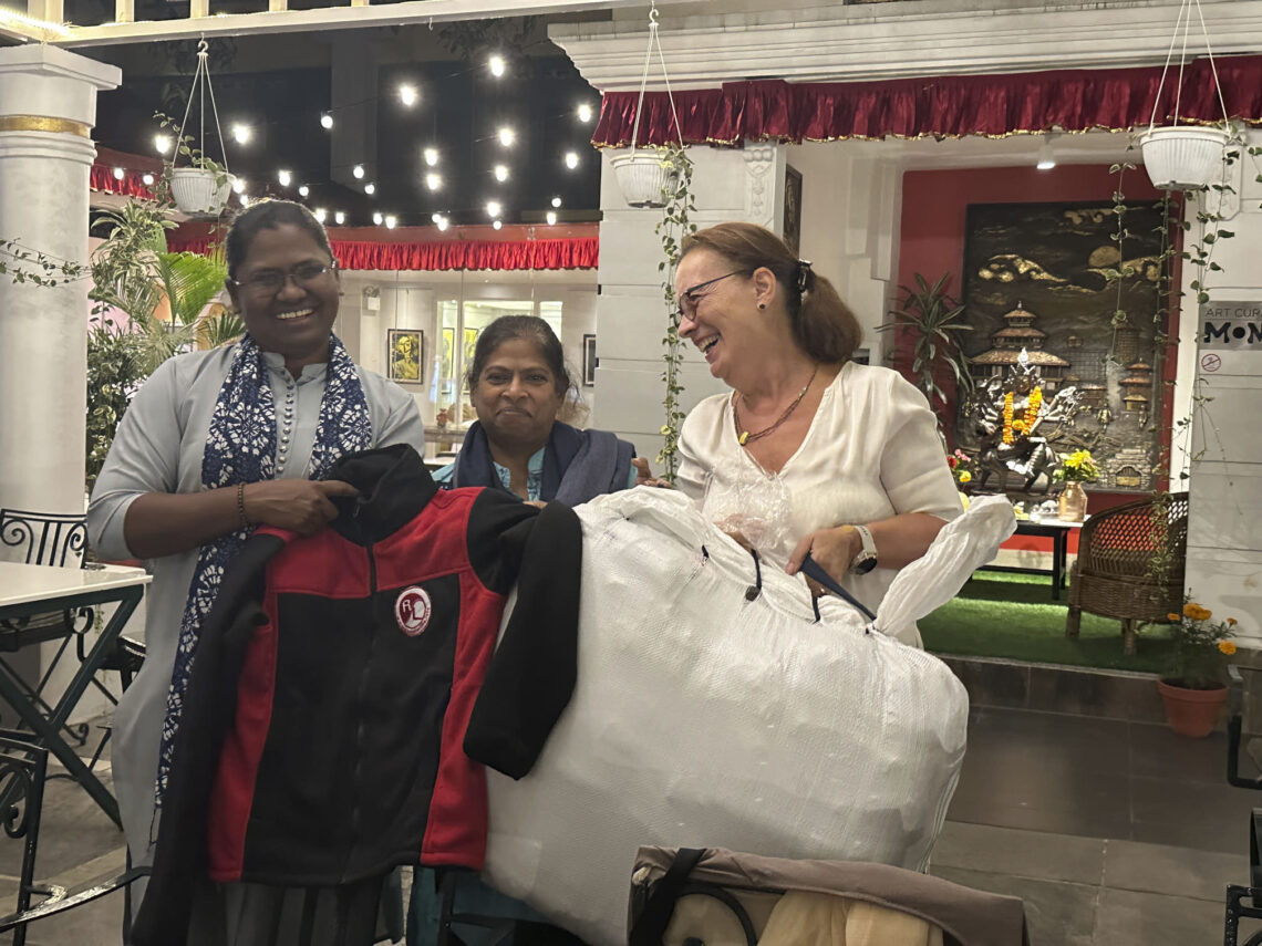 .. wurden in Kathmandu mit dem Oportunity Village (OVN) die Haargummis gegen die warmen Jacken. Synergien und Wertschöpfung sind uns wichtig, so konnten die Mädchen in Pokhara Geld verdienen indem sie die Haargummis genäht haben, die jetzt in den Dörfern an die Frauen verteilt werden. Für die Mädchen in Pokhara wurden 30 warme Jacken übergeben.