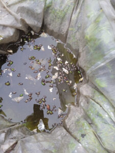 .. und Wassermanagement sind wesentliche Bestandteile der nachhaltigen Landwirtschaft in Chyangsar. Unsere Experten haben den Frauen einige Wege gezeigt, die Schädlinge auf natürliche Weise zu bekämpfen. Lichtfallen, Gelbtafeln und rote Fahnen helfen dabei. Das Wasser aus der Küche wird durch Filter in einem kleinen Teich gesammelt und zum Gießen verwendet.
