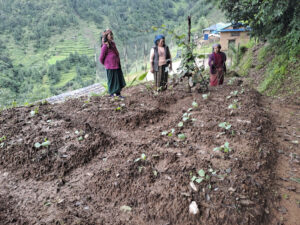 .. führen die Frauen in Ghunsa die Modellfarm. In der Mischkultur unterstützen sich die Pflanzen gegenseitig. Die Jungpflanzen sind am Feld und im Gewächshaus wird alles für die nächste Aussaat vorbereitet.