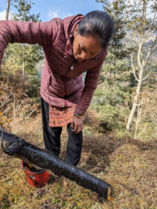 … the high-yielding kiwis on the model farm in Chyangsar. The original structure was too weak. With hard wood and ‘feet’ treated according to old methods, the new scaffolding should be able to hold the abundant harvest well.