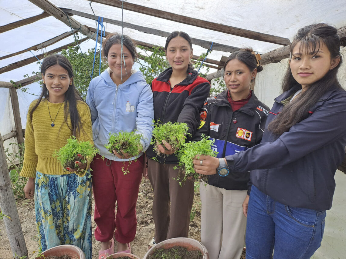 .. führen die Frauen in Ghunsa die Modellfarm. In der Mischkultur unterstützen sich die Pflanzen gegenseitig. Die Jungpflanzen sind am Feld und im Gewächshaus wird alles für die nächste Aussaat vorbereitet. Vielen Dank an die Schöck Familienstiftung für die Unterstützung der Farmen.